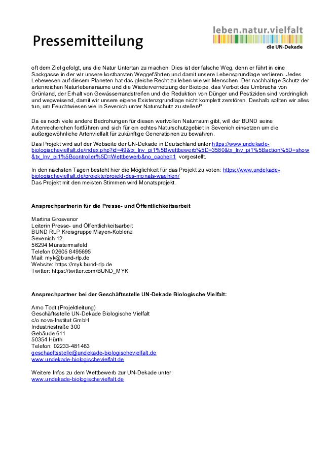 BUND RLP, 5.7.2023, Link: BUND-Spendenaufruf für Rettung des Sevenicher Biotopverbundes
